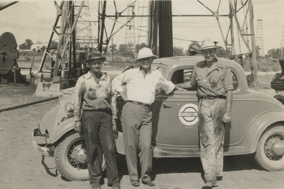 Determined to learn the family’s oil business “from the ground up,” Winthrop worked at Standard Oil of New Jersey’s Bayonne, N.J. refinery for a few weeks in June and July of 1933. In late July, Winthrop visited some Humble Oil and Refining Company Texas oil fields, including a tour of the giant East Texas oil field, discovered in 1930. Humble, founded in 1911, became an affiliate of Standard Oil of New Jersey in 1919. Winthrop began working at Humble’s Baytown, Texas oil refinery, but his stay in Texas was cut short after rumored kidnapping threats caused him to return to New York in August 1933. In February 1934, during his third year at Yale University, he left school, returning to Texas to work for Humble as a roughneck and roustabout.