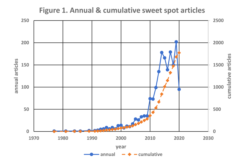 It appears the term “sweet spot” first occurred in the petroleum literature almost 40 years ago. More than 1,700 papers have been published on the topic of sweet spots since 1977, an average of just under one paper per week.
