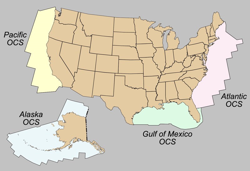 As early as 1896, oil was produced from wells on a pier built into the Santa Barbara Channel in California. In 1945, interest in the mineral potential beyond the shorelines, as well as national security issues, prompted President Harry Truman to issue an executive order extending U.S. jurisdiction to the edge of the OCS. Offshore oil production beyond the sight of land began in the Gulf of Mexico’s Ship Shoal Block in 1947 by Kerr-McGee Corporation; this was from a platform anchored on the sea floor in about 18 feet of water.