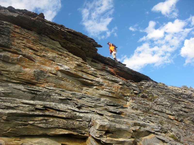 Tidal inlet deposits in Nanushuk Formation,May Creek, 2010. Photo by Chris Schenk, USGS.