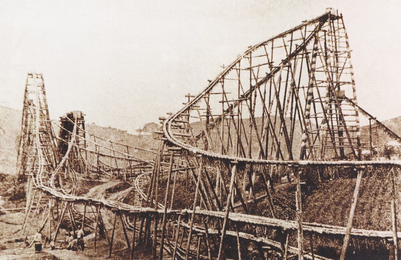 A major breakthrough that allowed deeper wells was achieved around 1050 AD, when solid bamboo pipe was replaced by thin, light, flexible bamboo “cable.” This dramatically lowered the weight that needed to be lifted from the surface – a weight that obviously increased with the depth being drilled. By the 1700s, Sichuan wells were typically in the range of 300–400 meters deep, and in 1835 the Shenghai Well was the first well in the world to exceed 1,000 meters of depth. In comparison, the deepest wells in the United States at that time were about 500 meters deep. The Sichuan salt-producing industry was centerd around Zigong, and early photographs show hundreds of producing derricks known as “heaven carts,” salt stove operations, and the Fuxi River jammed with salt trading boats. Brine and natural gas were transported through hundreds of kilometers of bamboo pipeline.