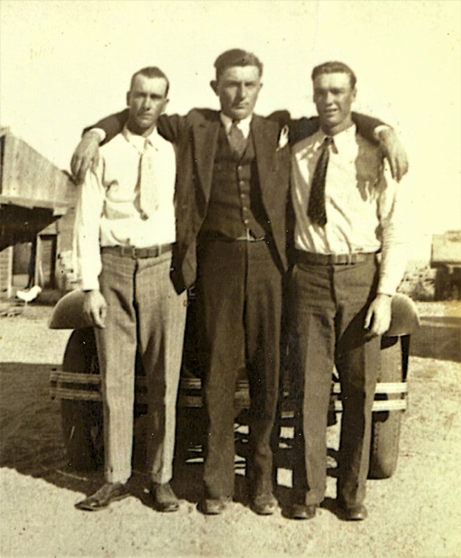 Gasoline plant construction buddies (left to right): Carl Wright, George Rhine, Albert Harris,1934