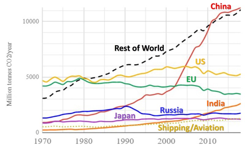 World Fossil CO2 Emissions 1970-2018