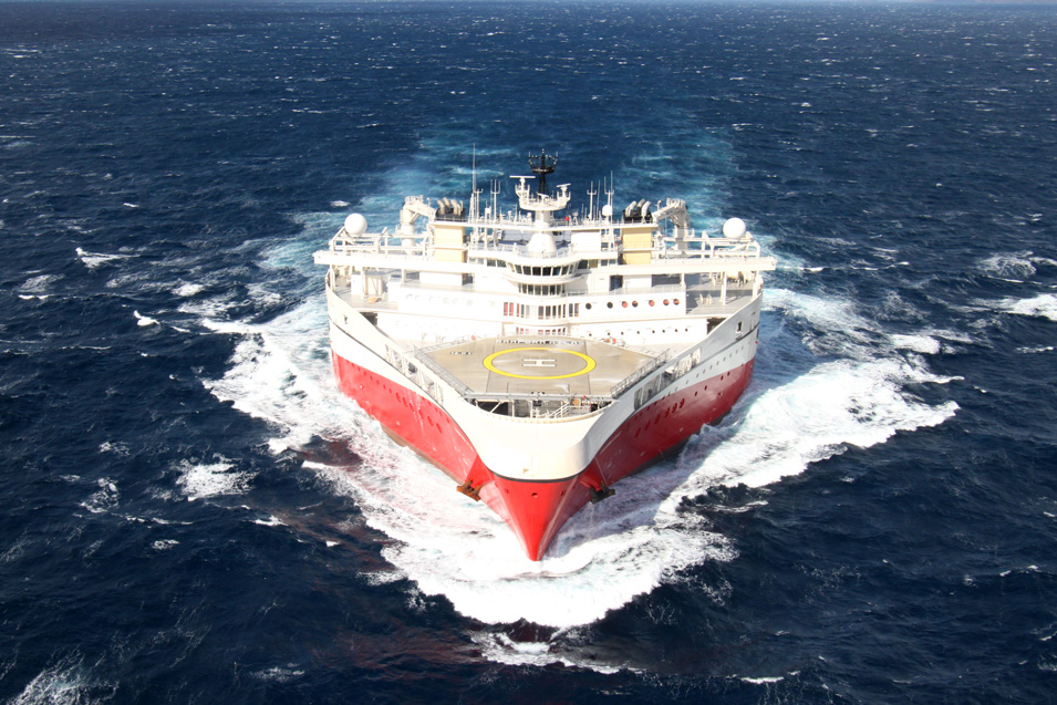 PGS’ Ramform Atlas 3-D seismic vessel is among a fleet of about 15 operational vessels today, down from about 60 vessels a decade ago. Photo courtesy of PGS.