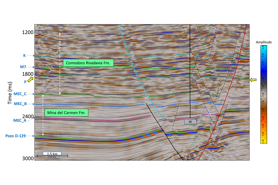 Interestingly, due to the volcanic activity throughout the history of the Golfo San Jorge Basin, the sediments are found to be tuffaceous. The volcanic clastics contain minerals with a wide range of matrix densities. The challenge is to characterize the reservoir sands in the different formation units. Consequently, seismic facies determination formed part of the reservoir characterization exercise which could hopefully prove useful toward cost-effective drilling. In the present case we focus on the seismic facies comparison below the P-marker. It may be pointed out that the name “P-marker” is not associated with P-impedance. It is simply a geological horizon denomination here.