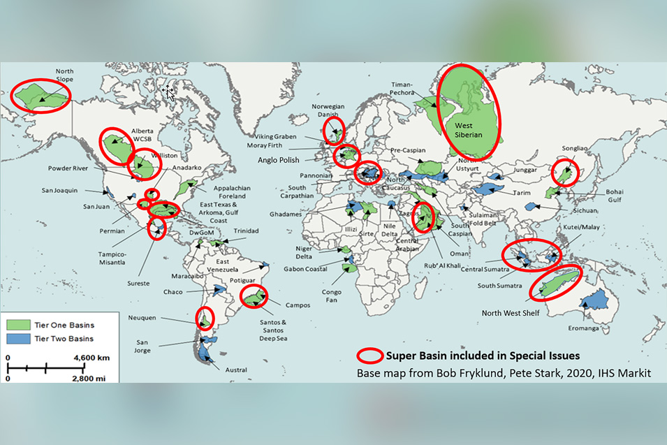 The world’s top 20 super basins contain about 57 percent of the biggest oil fields in the world.