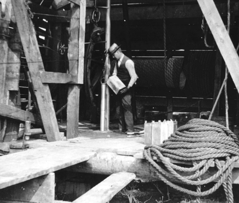 Smith and his sons continued the operation until they were down about 69 feet when the bit suddenly dropped about six inches. As it was near the end of the day, and as it was Saturday, Smith decided to stop early. Although there was no work on Sunday, Smith’s curiosity got the better of him and he went out to check the well, discovering that there was oil, mixed with saltwater, in the pipe.