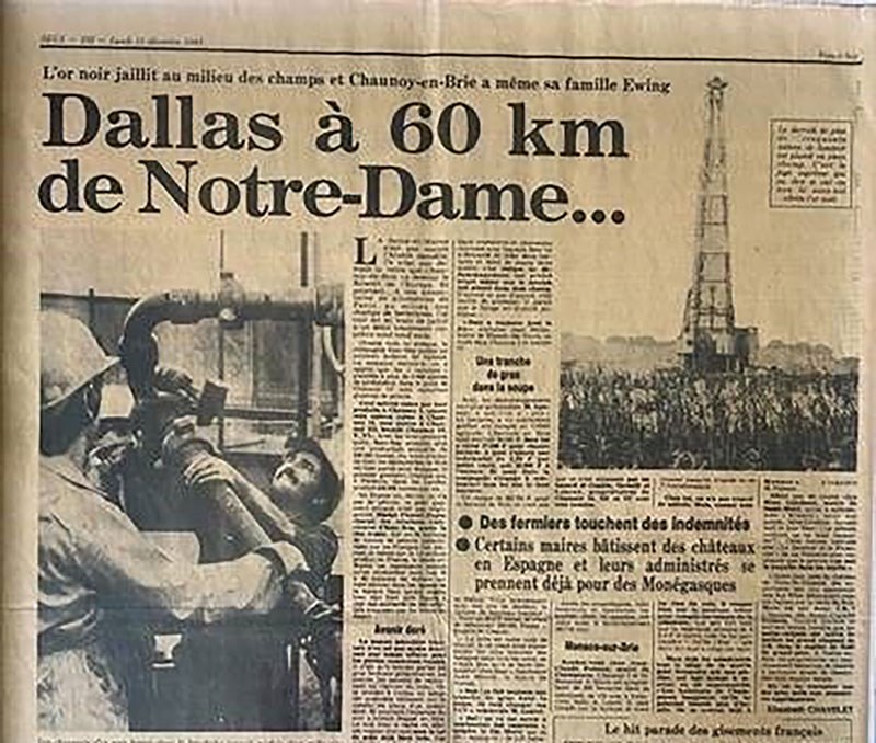 : Chaunoy discovery, “Dallas near Paris” (Newspaper clipping from 1983, the height of popularity for the American TV show “Dallas,” Vermilion LinkedIn post, 2023
