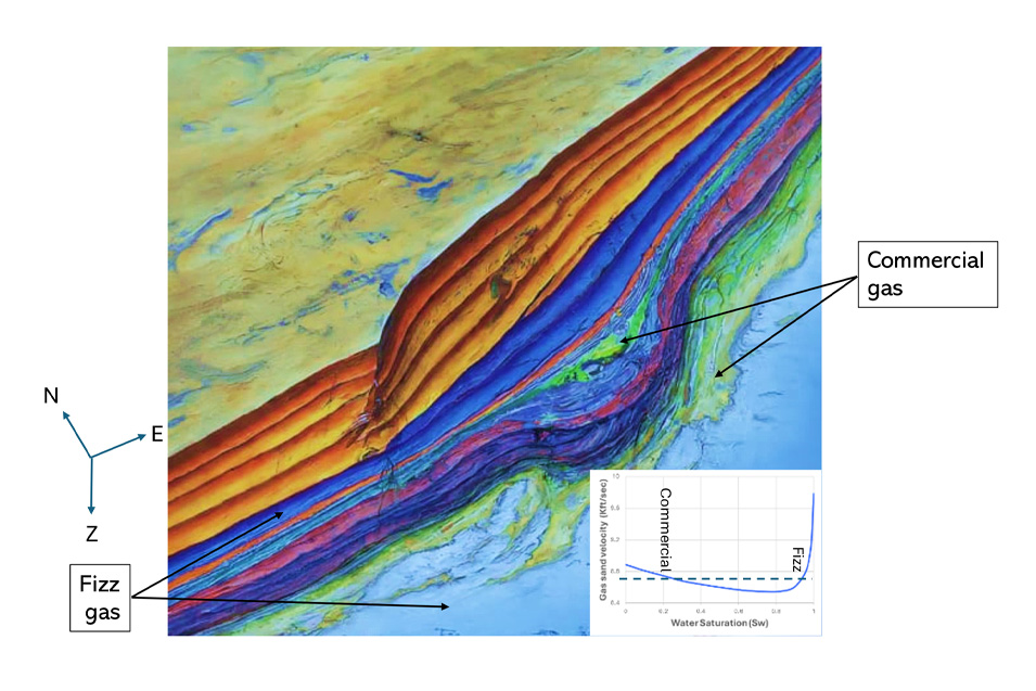 Now, going back to our initial question, the general workflow to differentiate residual (“fizz”) gas from commercial gas is no different from other workflows we apply if we want to separate a target rock from the background when both have a similar seismic response.