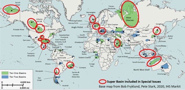 Map Showing global basins covered by the four AAPG Bulletin Super Basin Special Issues. “Know these basins!” said Sternbach.