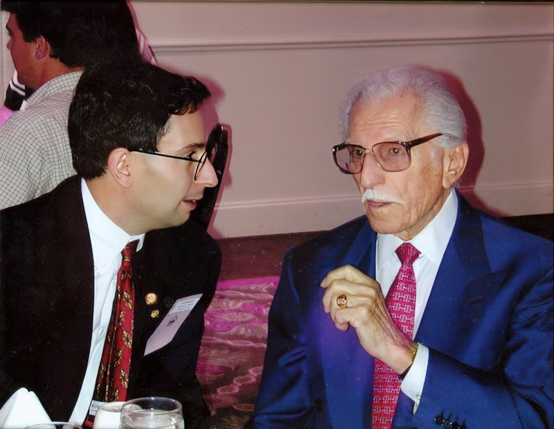 Sternbach convening with Michel T. Halbouty on Sept. 13, 2000, in Houston