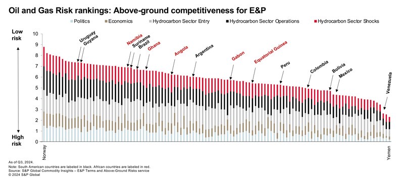 “We see the risks on average are generally slightly higher in African Margin countries than those in South America, where we have Uruguay and Guyana with the lowest risk score (highest attractiveness for foreign investors) while Venezuela lag behind as one of the lowest attractive for investment,” Vaz said.