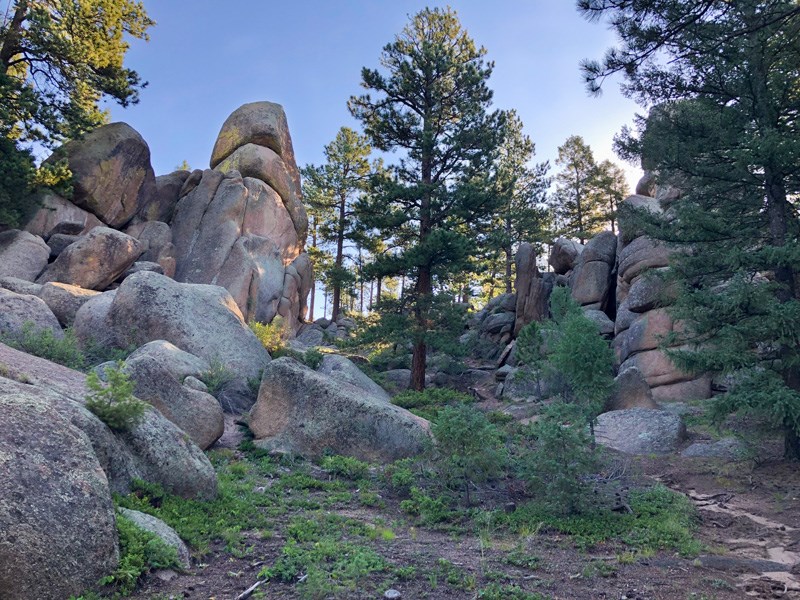 Following the South Platte, the vegetation cover here was thinner than what is typical of the eastern forests and the surrounding mountains were unimpressive, rocky and sparsely vegetated. The underlying bedrock here was 1.7-billion-year-old gneiss where I caught occasional glimpses of the colorful bands of light- and dark-colored crystals in the ribbony foliation. Though still early morning, I could already feel the intense heat of the sun overhead and had no shade above me.