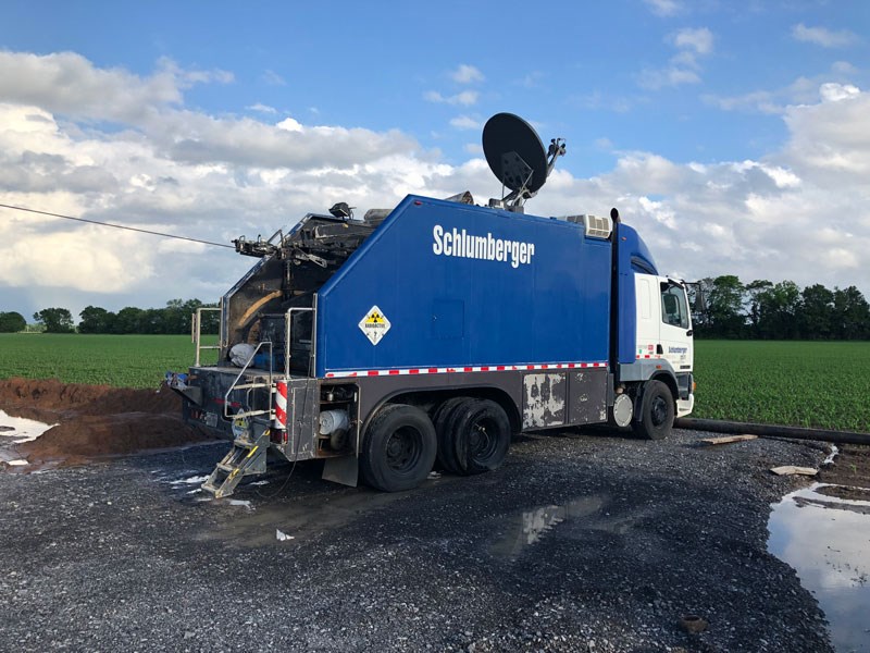 Schlumberger wireline truck on location during the extensive logging of the company’s Class V Stratigraphic Test Well