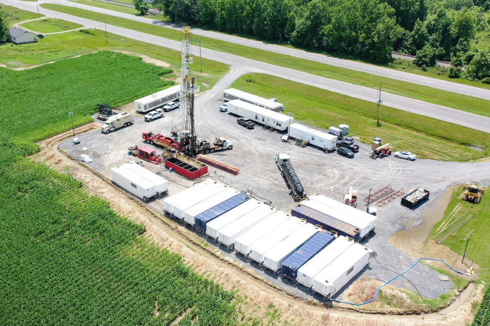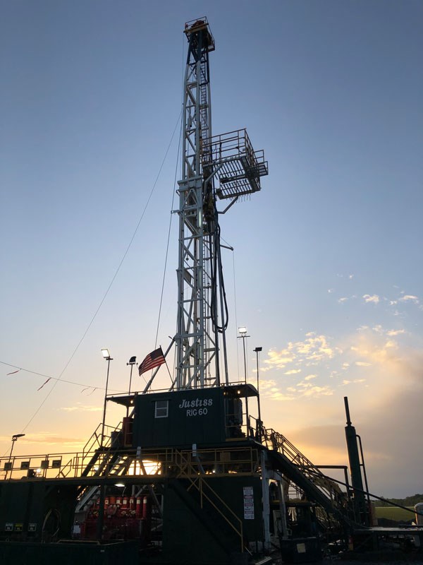 Justiss Oil Company rig drilling ahead on the Class V Stratigraphic Test Well at the Louisiana Green Fuels proposed sequestration site in 2021.