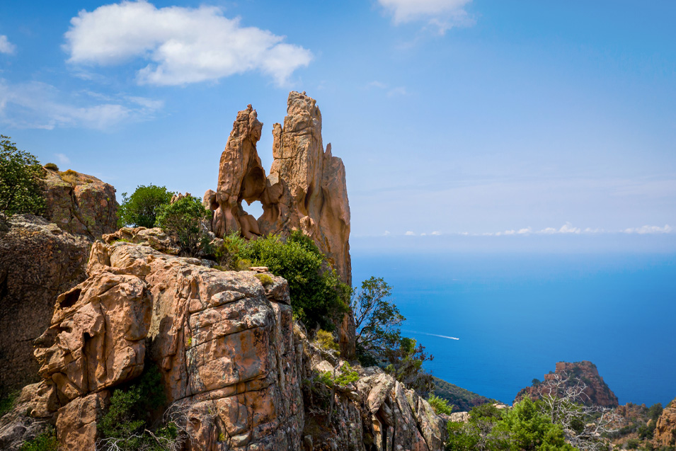 The French island of Corsica is the fourth largest island in the Mediterranean Sea, located between Italy and France, and is home to more than 50 mountains more than 2,000 meters high: The word “calanche” means “coves bordered by steep slopes” in French. The area near the Gulf of Porto is a UNESCO World Heritage site, and in it lies another heart-shaped cutout in the rocks.