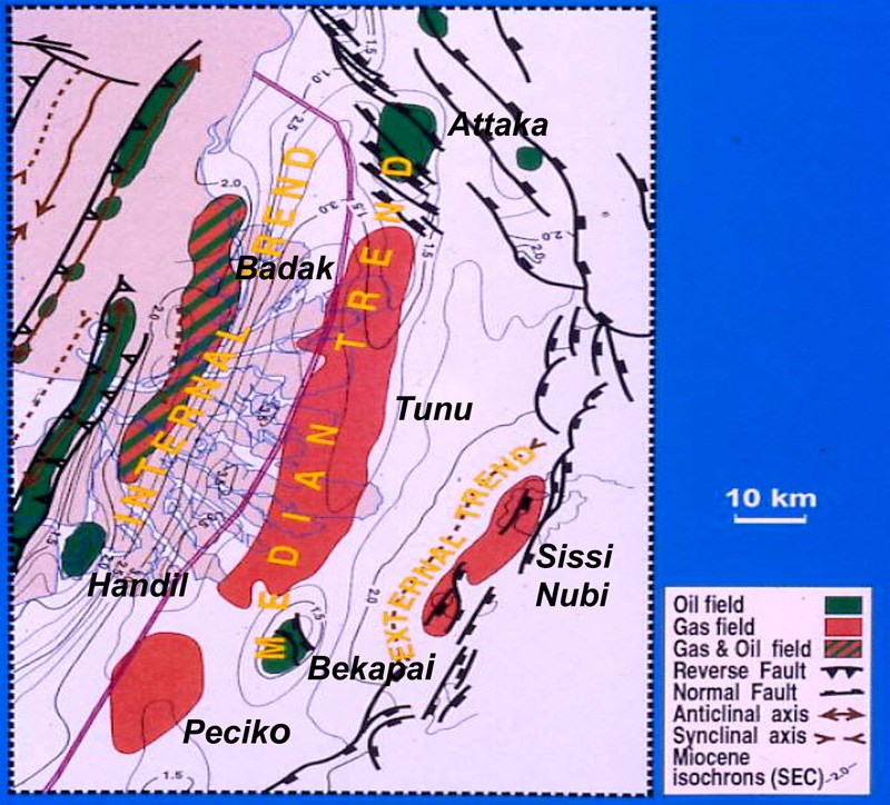 The Mahakam Delta Basin is one of the oldest petroleum provinces of the world, with its first fields discovered and exploited onshore Kalimantan, Indonesia, from the end of the 19th century until now. After World War II, exploration picked up again on new territories in the basin, extending toward the delta itself and the offshore. Structurally speaking, these operations took place over three large concentric structural trends, named inner, median and external. Bekapai belongs to the first phase of structural exploration, and Peciko was part of the second phase of a stratigraphically oriented program.