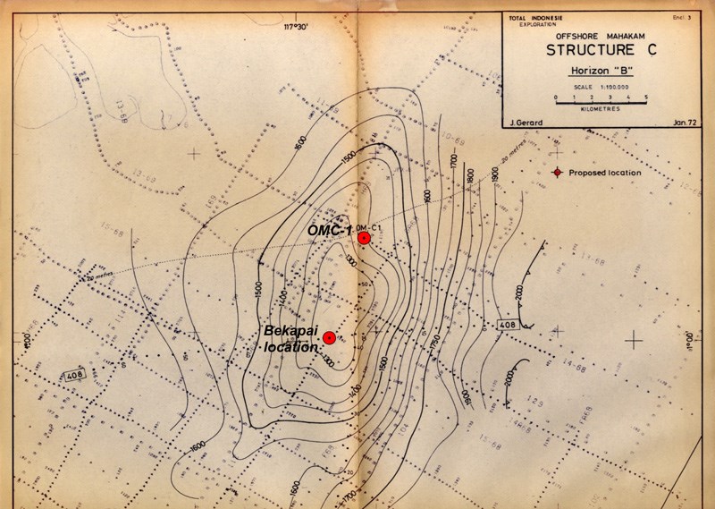 Original structural map of the Bekapai structure. Image courtesy of J. Gérard.