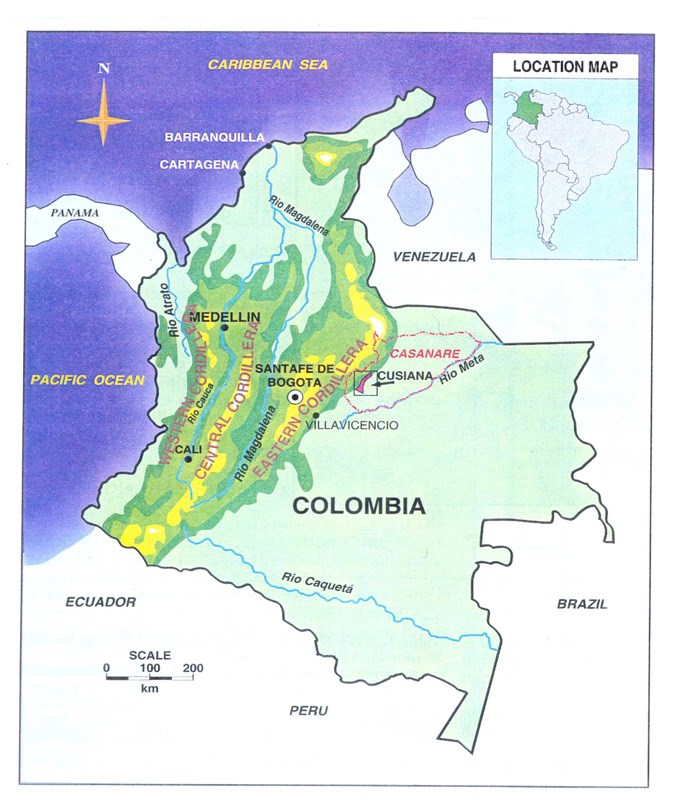 Map of Colombia, showing location of the Cusiana prospect