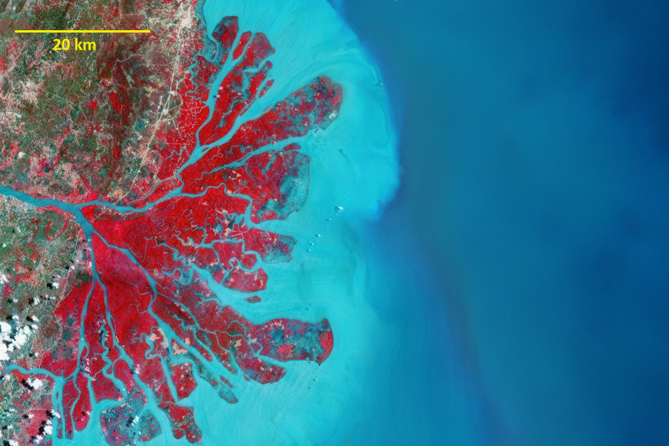 Point bars of the modern delta front, a model for Miocene reservoirs. Image courtesy of G. Allen.