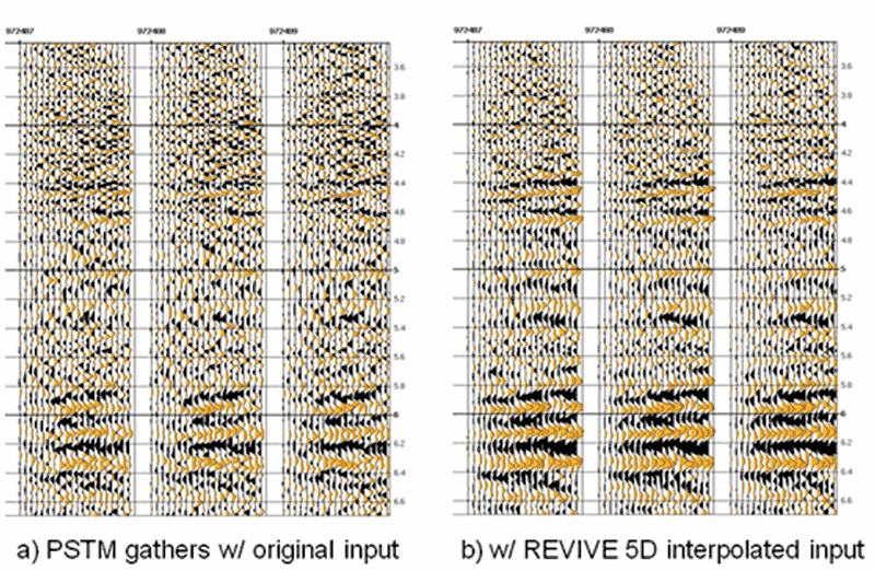 To address the problems of incomplete data acquisition and undersampling, CGGVeritas developed its “Revive 5D” interpolation approach, “to infill sampling gaps and increase spatial sampling while preserving original recorded data.”