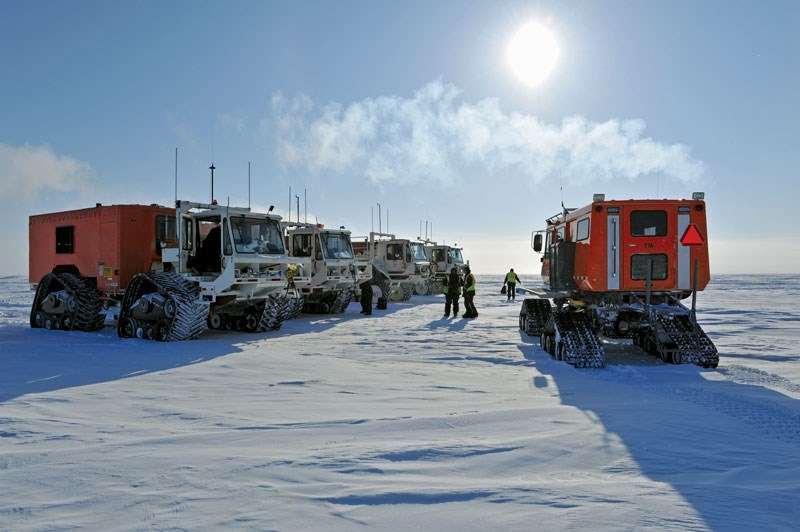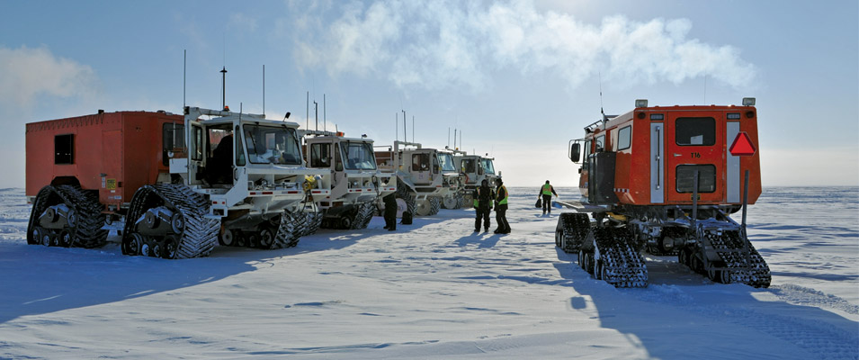 The big chill: Carefully monitored operations, specialized equipment and intensive training help seismic crews minimize impact in the harsh but delicate Arctic environment. Photo courtesy of CGGVeritas.