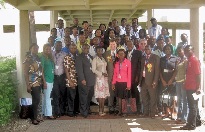As AAPG president last year, Scott Tinker (front center) got to meet with Nigerian geology students – which helped open the door for their camp experience in Montana.